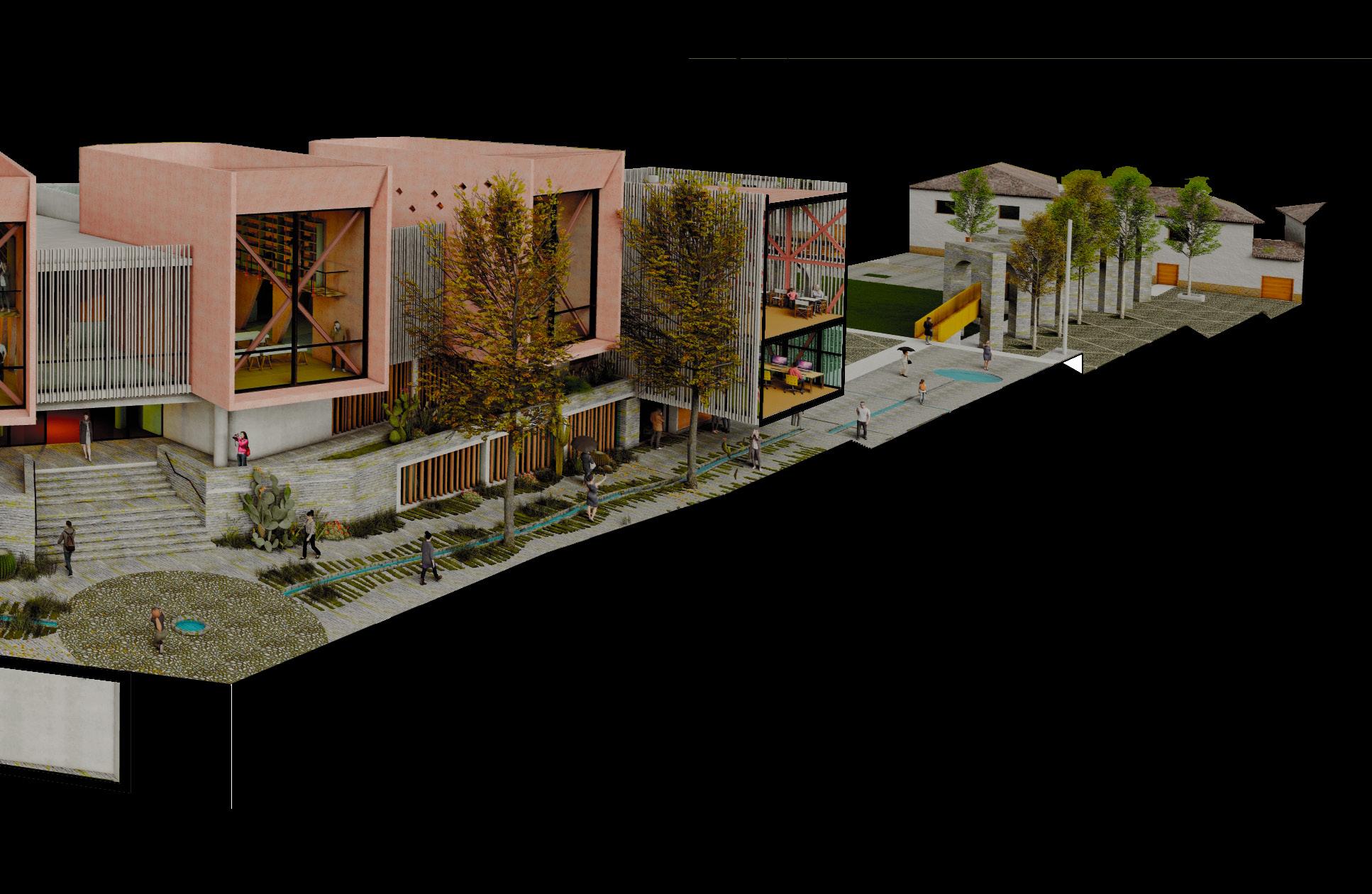 Las aperturas hacia el espacio publico, y la relacion con el entorno construido es vital para el proyecto, por lo que la forma y escala responden al perfil de la calle.