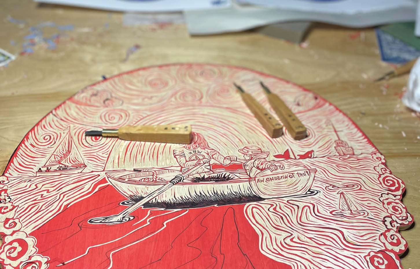Stop by Artist Row during Festival to try wood block art with Hannah Spencer.