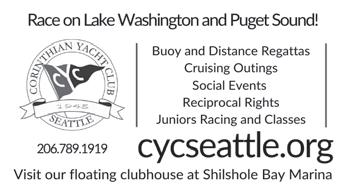• $3,500 $3,500 INSTRUCTION Basic through Advanced Sailing Lessons Week-long Cruise & Learn lessons Spinnaker, Intro and Advance Racing Classes Gill foulweather gear & Dubarry footwear 206-782-5100 www.seattlesailing.com info@seattlesailing.com 7001 Seaview Ave NW Suite 130 (Shilshole Bay Marina in Port of Seattle Building) MOORAGE LIBERTY BAY MARINA 40’ – 48’ – 60’ slips. Great location in Poulsbo, WA Restrooms, Showers. Call the Marina Manager for availability and waitlist options: 360-779-7762 American Sailing Association courses Basic Keelboat 101 through Advanced Coastal 206 Based in Beautiful Anacortes, WA www.sailtime.com/anacortes/sailing-school info@seattleyachts.com 360-299-0777 VESSEL MOVING No ocean too big, no trip too small, no ship too large, no mast too tall, sail or power, we move them all!!! When you are ready, give us a call. Professional service since 1967. CappyTom@aol.com • (206) 390- 1596 PROFESSIONAL SERVICES Full service rig shop serving Puget Sound www.evergreenrigging.com Cliff Hennen (360) 207-5016 • (206) 718-5582 The Systems Specialists www.emharbor.com Please contact us to arrange a visit: 206-285-3632 E-mail: info@emharbor.com Electronics E-mail: larry@emharbor.com Based at Elliott Bay Marina MARINE EQUIPMENT