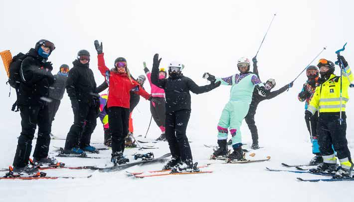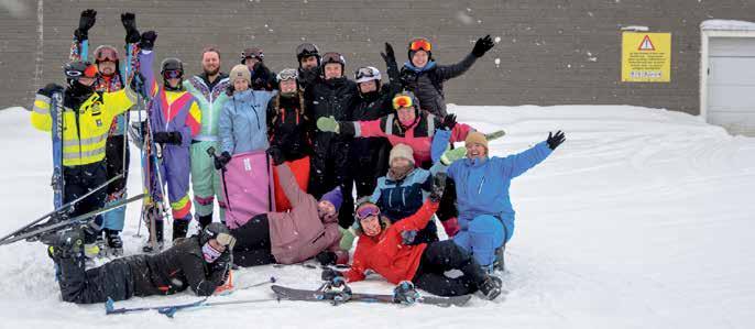 Etter noen runder i bakken samlet gjengen seg for felles lunsj i kaféen. Når alle var forsynt samlet de seg utenfor til et fargerikt gruppebilde.