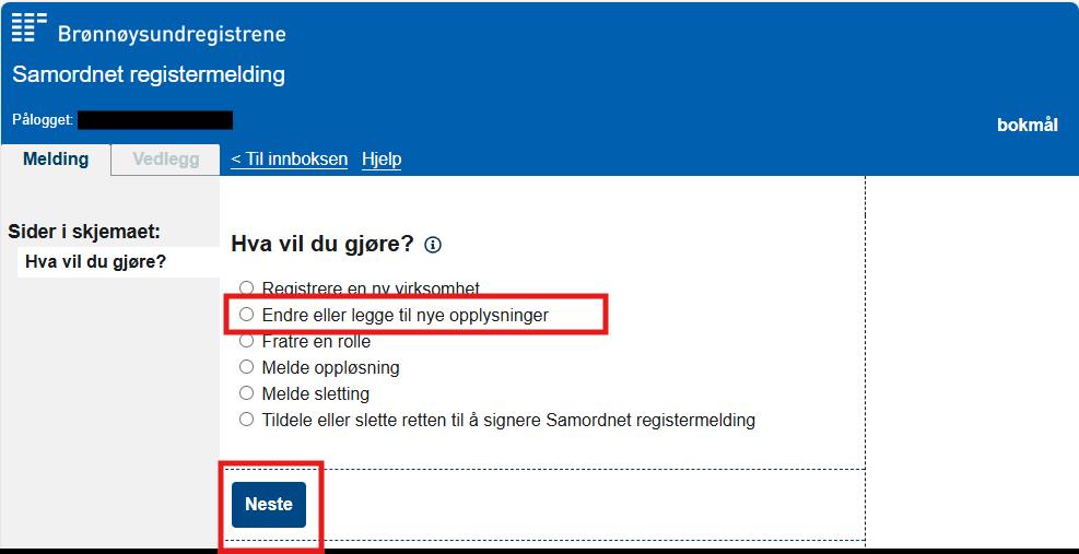 a. Velg «Endre eller legge til opplysninger»