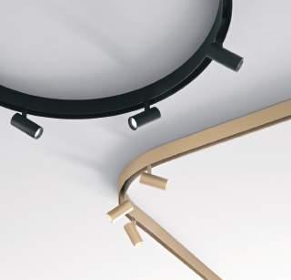 Corpi illuminanti con attacco curvo, compatibili con connessioni curve (e collezione RING). Luminaires with curved attachment, compatible with curved connections (and RING collection).