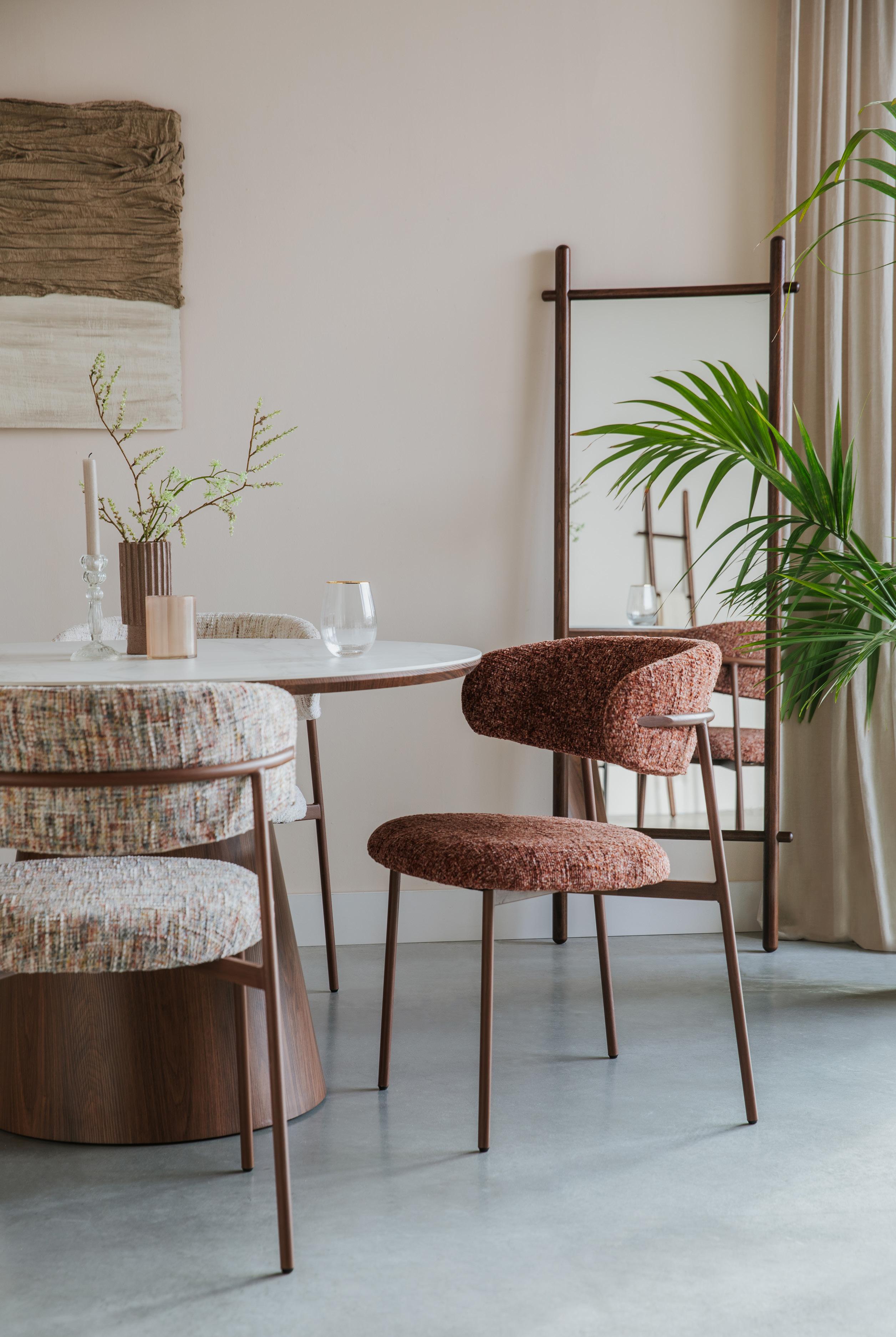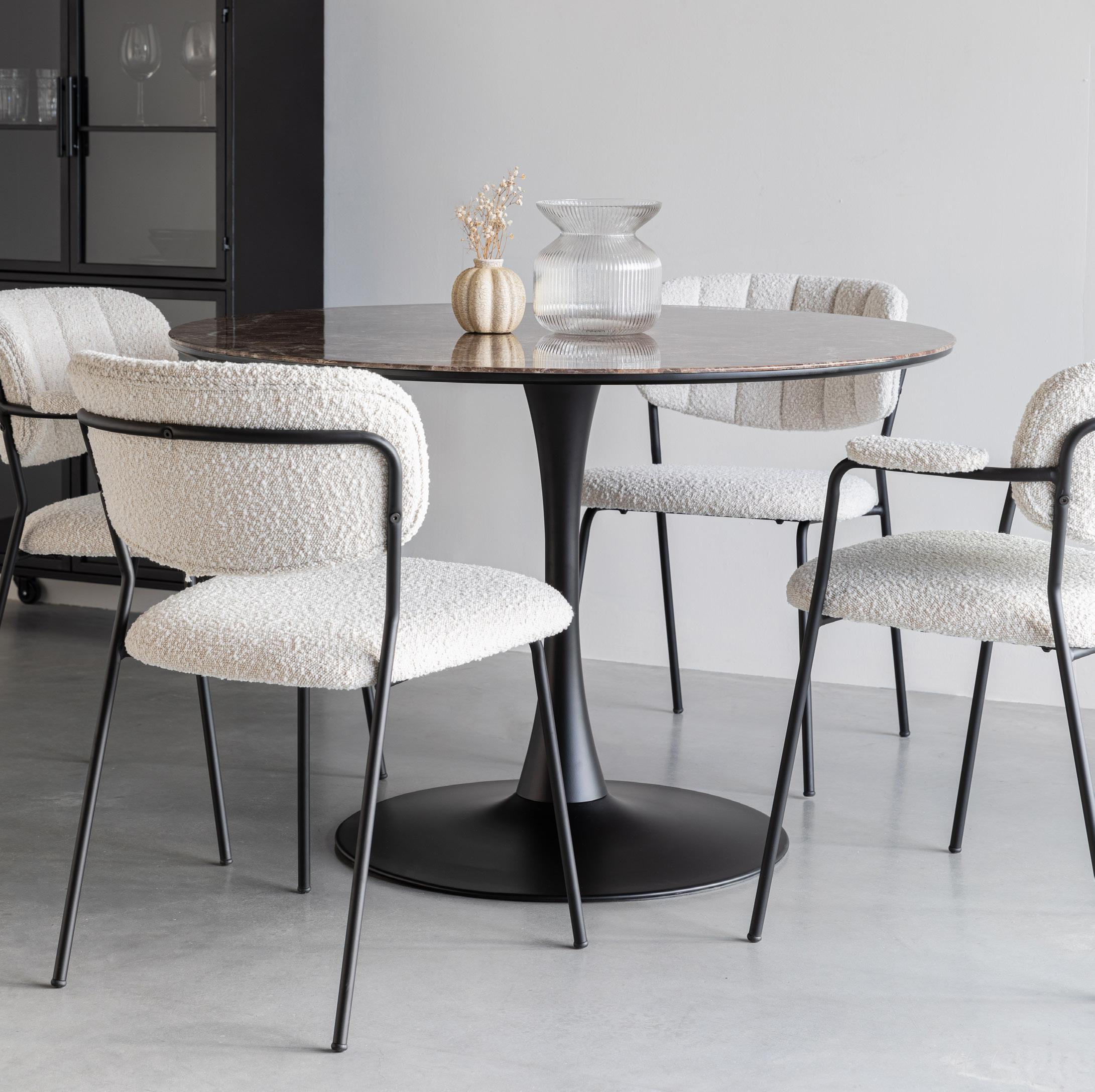 1001039 Laurent table walnut | 1001061 Che chair walnut | 5100030 Metal bow floor lamp