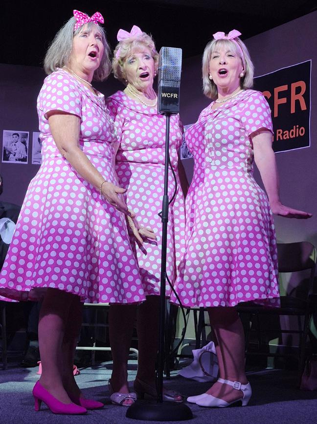 Bringing the golden age of radio to life, the “Pinkettes” (Sharon Gublo, Joan Toepfer, and Andrea Janzen) charmed the audience with timeless jingles like Brylcreem’s “A little dab’ll do ya” and Alka-Seltzer’s “Plop, plop, fizz, fizz—oh, what a relief it is!” Jan added to the magic with her with her aptly (or skillfully) chosen/selected 1940’s era polka dot dresses.