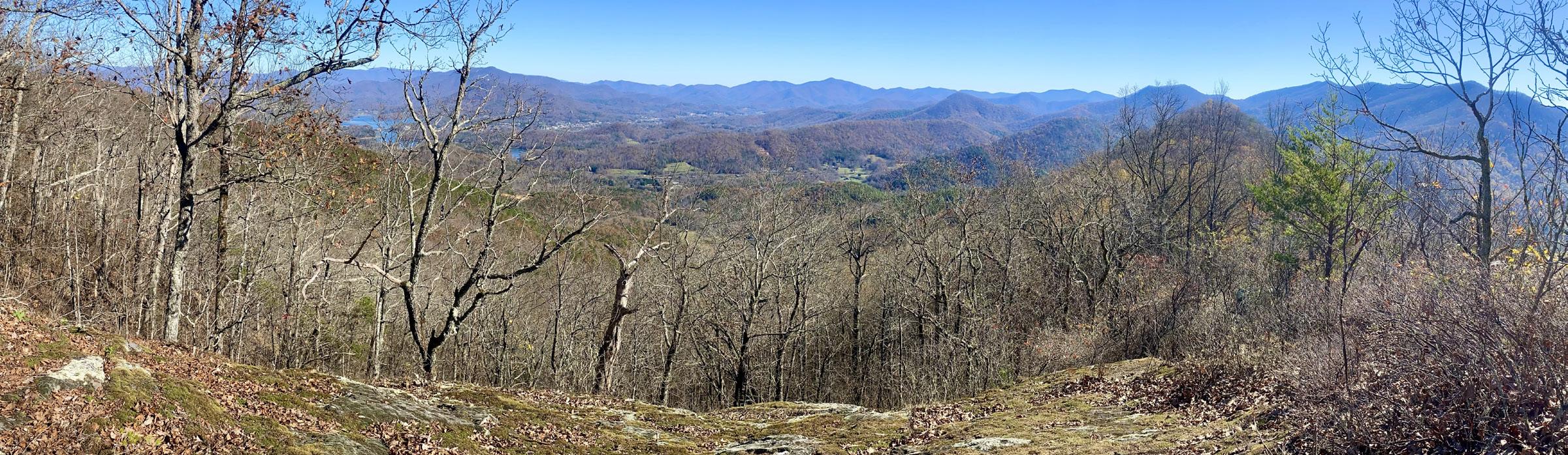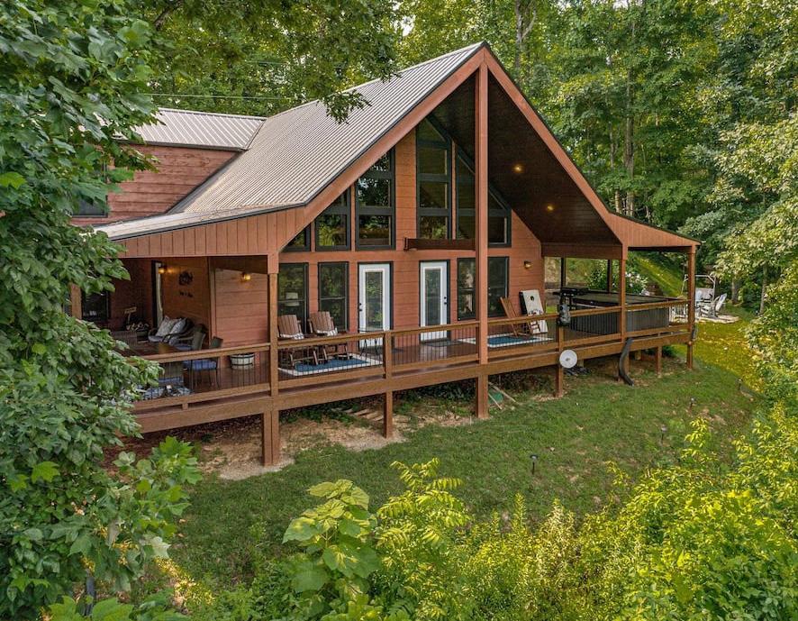 4BR/3BA - 3120 SF - 1.96 AC - Authentic wood cabin in Hickory Cove Preserve. Private, with awe-inspiring long range year round views. Wrap around double decks w/ hot tub. Many custom features!