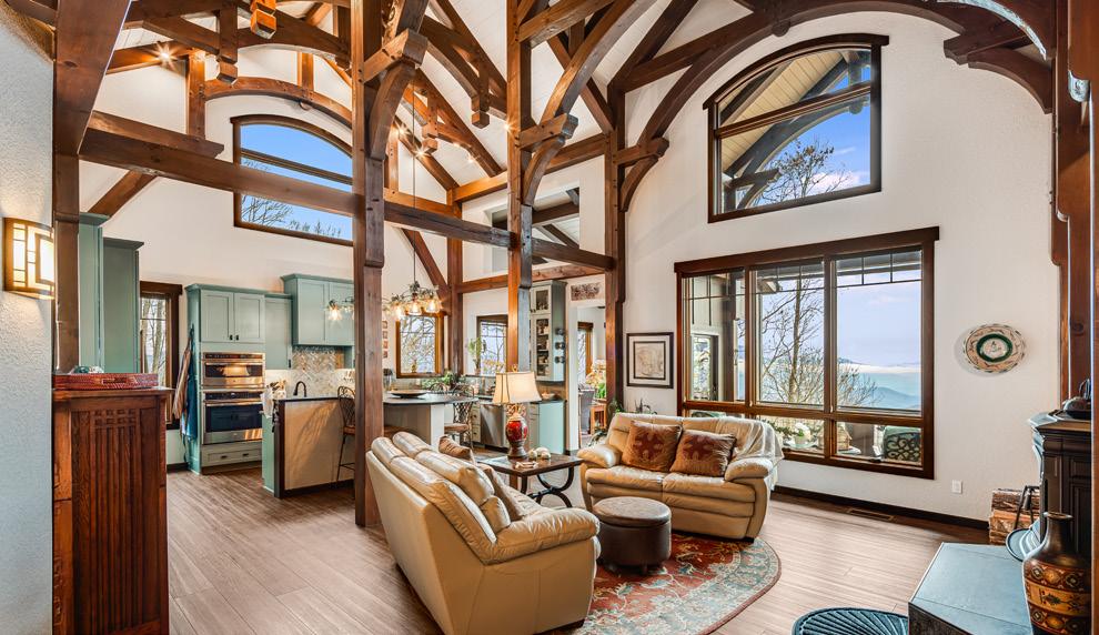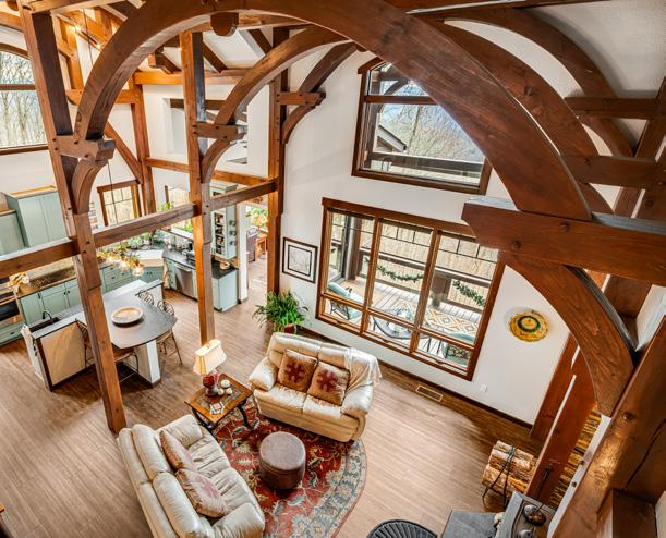 At the heart of the property is a true handcrafted timber-frame residence—an architectural statement designed not only for beauty, but for longevity. Cathedral ceilings, exposed beams, and seamless transitions between interior spaces and covered outdoor living areas reflect a deep respect for craftsmanship and the surrounding landscape. Every structural element was selected to ensure strength, durability, and timeless appeal, creating a home built to endure for generations.