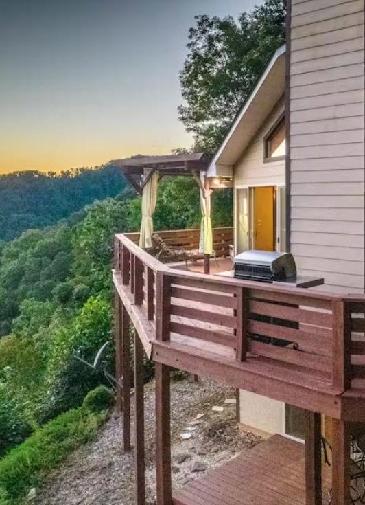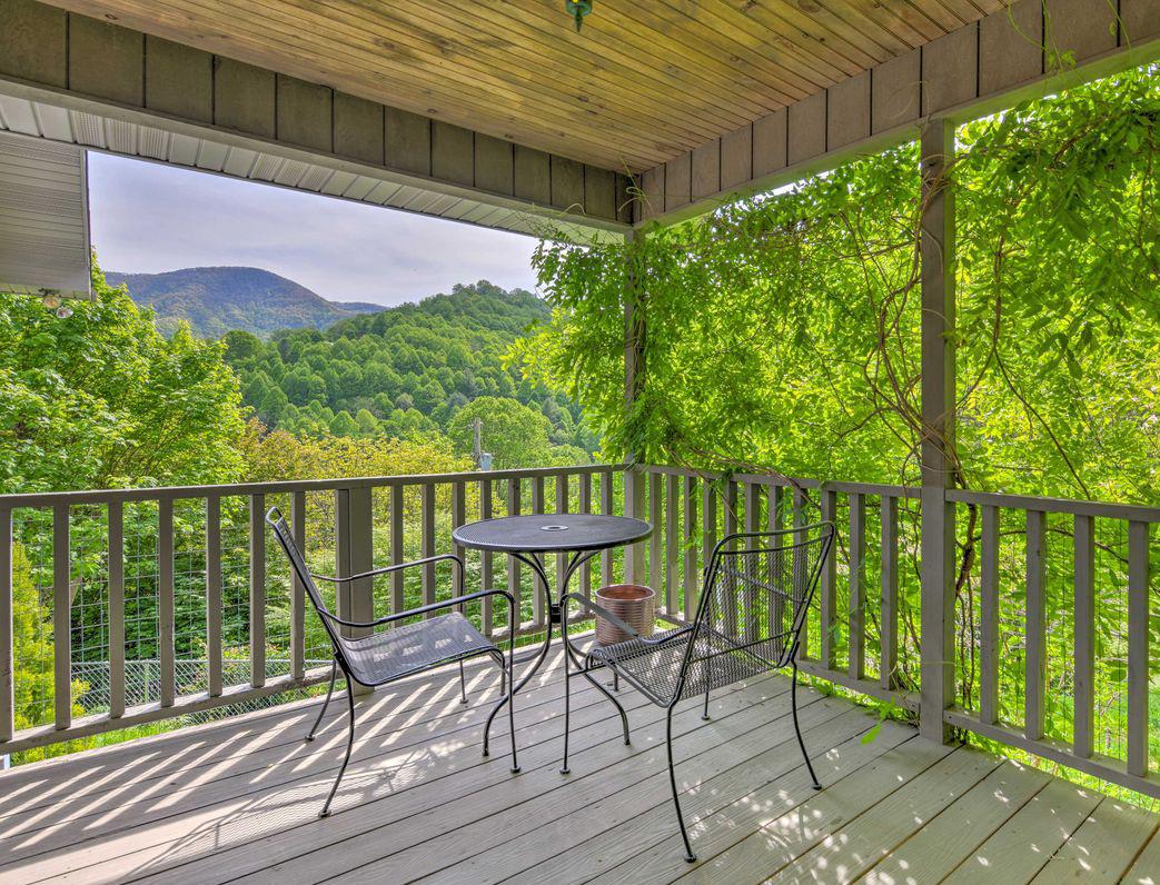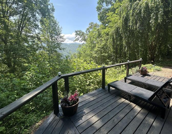 2/2/Sleeps 4 - Step onto the deck overlooking downtown Bryson City and the Smoky Mountains. Soak in the private hot tub as you listen to the soothing sounds of the Tuckasegee River.