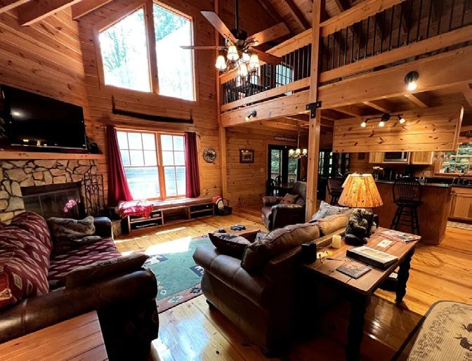Set on 5 private acres with breathtaking valley and mountain views, Eagles Nest is the perfect yearround getaway! The great room boasts knotty pine features and a wall of windows and sliding glass doors welcoming in plenty of natural light. You'll find an open living area and a well-equipped, full kitchen with stainless steel appliances and counter seating. Additional living space is located downstairs.