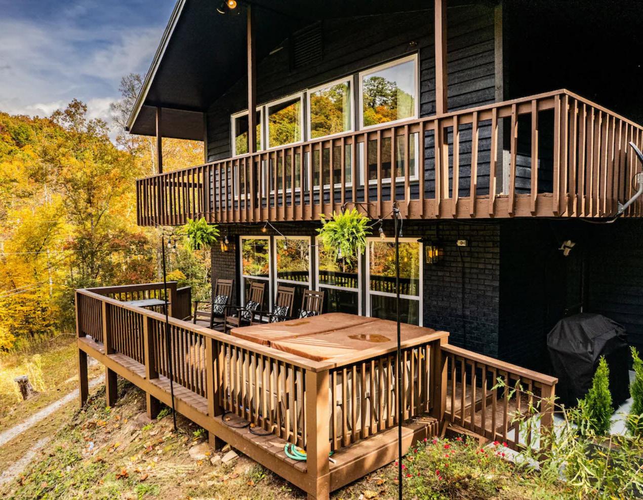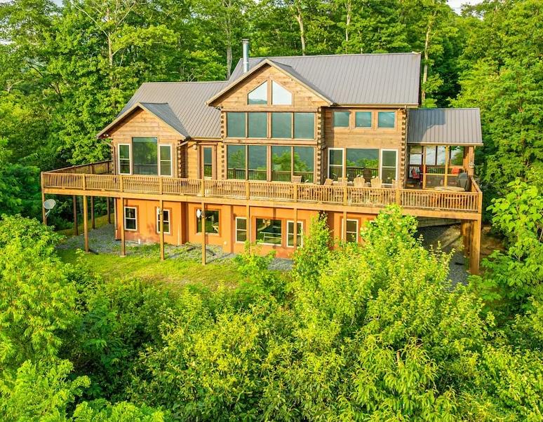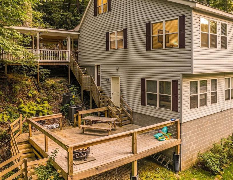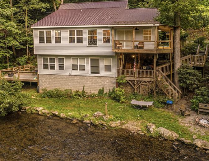 Lovely mountain home near pond with private hot tub, fireplace, decks & firepit! 1.84 acres in Tobacco Branch Village. The community offers a covered picnic shelter + a fishing pond! Enjoy the two large decks as you sip your morning coffee or evening cocktails while taking in the majestic mountains and nearby lake. The basement is 504-squarefoot and is a great place to unwind and play games. Or you might gather around the firepit for some storytelling with your group. A note from Christy Mitchell: “Congratulations to Christie and Chance on their new vacation rental!”
