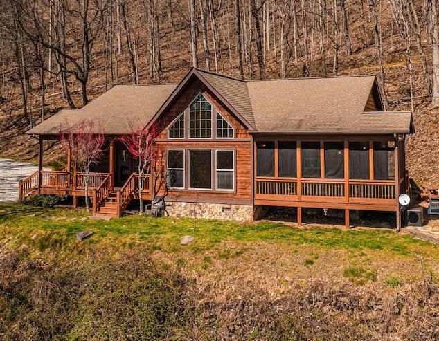 Tucked away in the peaceful Cowee Township just outside of Franklin, this cozy log cabin offers a perfect escape into the heart of the Blue Ridge Mountains. Unwind on the fully covered deck or the lower terrace, where you can sip your morning coffee. Wander through over two acres of private walking trails, then gather around the wood-burning firepit in the evening for stories, s’mores, and stargazing under the mountain sky. Inside, the main living room invites you to relax with family movie nights by the fireplace, while the downstairs game area offers friendly fun with a pool table. The updated kitchen is fully equipped with stainless steel appliances and a dishwasher—perfect for creating home-cooked meals. Whether you’re looking for peaceful relaxation or outdoor adventure, this mountain cabin delivers.