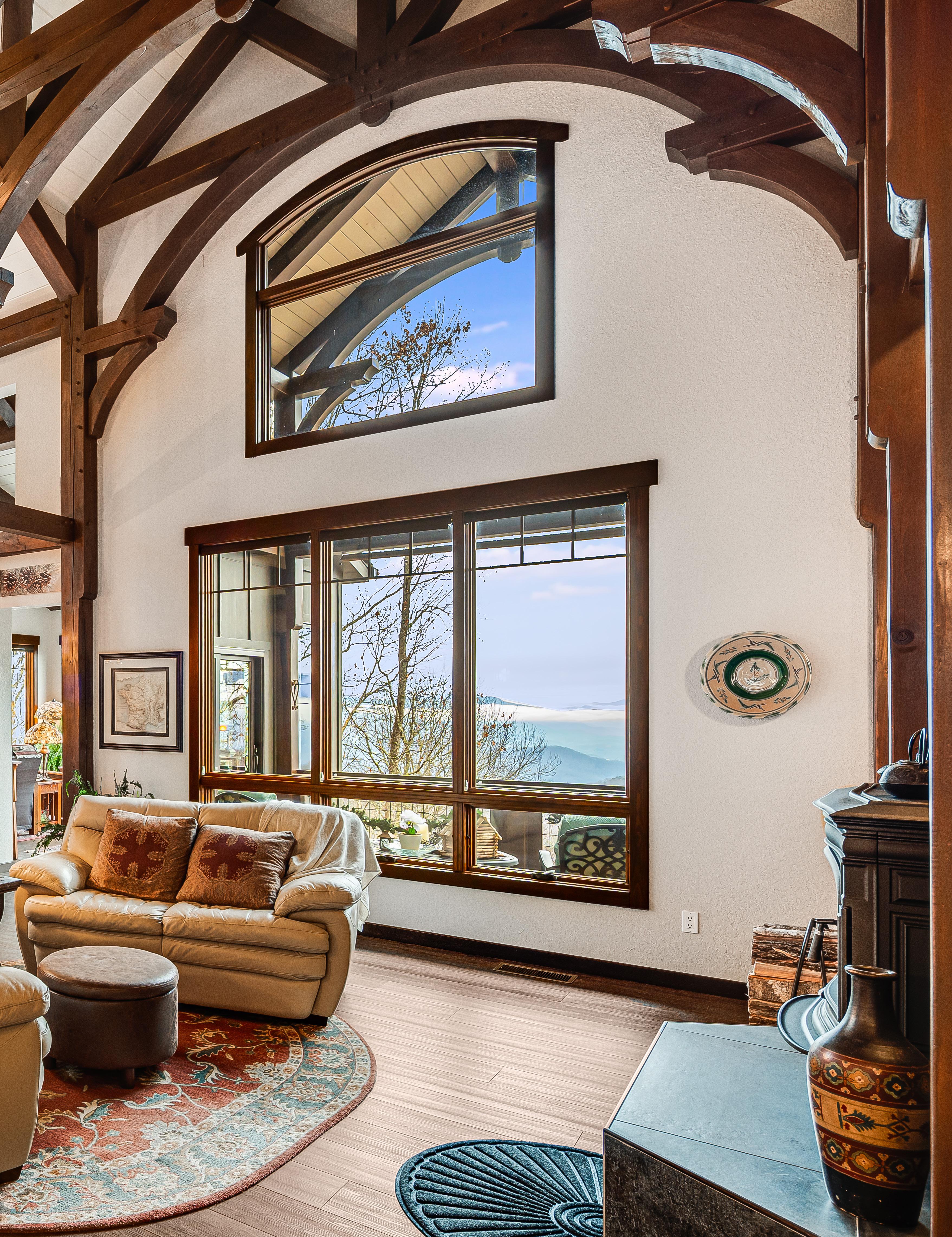 Built with intention and precision, the home’s orientation maximizes sunlight from sunrise to sunset without harsh exposure, creating bright, comfortable interiors year-round. From its commanding position above the valley, weather often passes below the home, offering the breathtaking illusion of rivers of clouds and ocean-like horizons stretching more than 40 miles. Surrounded by forest yet thoughtfully opened to expansive views, this is a setting that feels both powerful and serene.