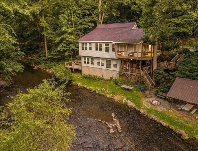 2/1/Sleeps 4 - Cabin sits right on a beautiful creek, offering peaceful sounds and stunning views yearround. Relax in the private hot tub, gather around the firepit under the stars.