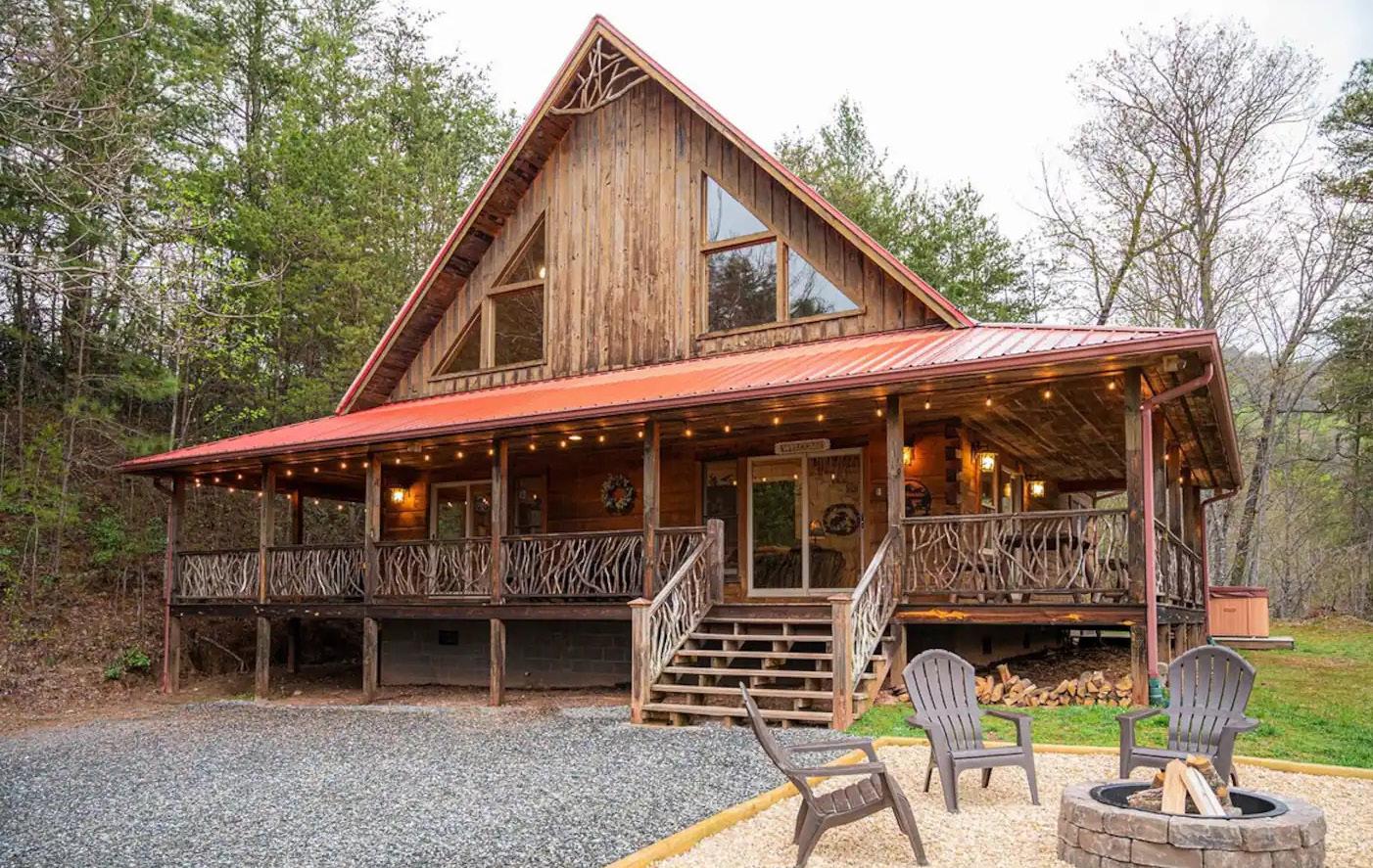Upscale wooded retreat tucked in the heart of the Smokies! Open living space with stunning high radial ceilings. Relax in the hot tub or tell stories at the fire pit as you unwind in nature. Key amenities include a brand new hot tub, fire pit with adirondack chairs, Blackstone griddle grill, washer and dryer, Starlink WiFi + dedicated workspace, coffeemaker with complimentary coffee & tea, and board games / books / puzzles / outdoor games!