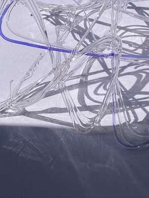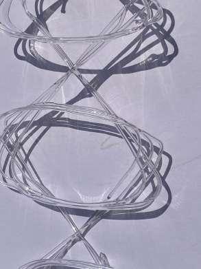 Utilizing robotic printing, we started to think about the logic of how it prints and the physics of how to create some unexpected angle and peak in the printing process. We attempted to higher the printer's extruder to let the line lay on the printing board, consequently, it would come out more like a pipe to create a more flexible reflection by the form we set.