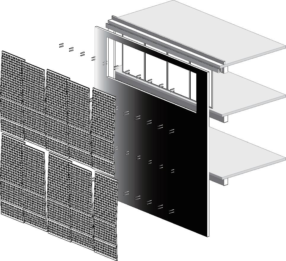 UP DN DN 22 23 25 24 26 27 27 26 28 DN Existing Elements Sandwich Panel Perforated Plate Facade 22. Vertical Green Fall 23. Terrance 24. Equipment Training Room 25. Fitness Training Room 26. Shower 27. Locker Room / Restroom 28. Aerobic Training Room Roof Floor Plan Third Floor Plan Perforated Plate Facade Detail Scale 1:100 N Scale 1:100 N Scale 1:60 A - A’ Section B - B’ Section -368 +0 +400 +770 +1170 +1569 +1870 -368 +0 +400 +770 +1170 +1569 +1870 A A’ B B’ 14