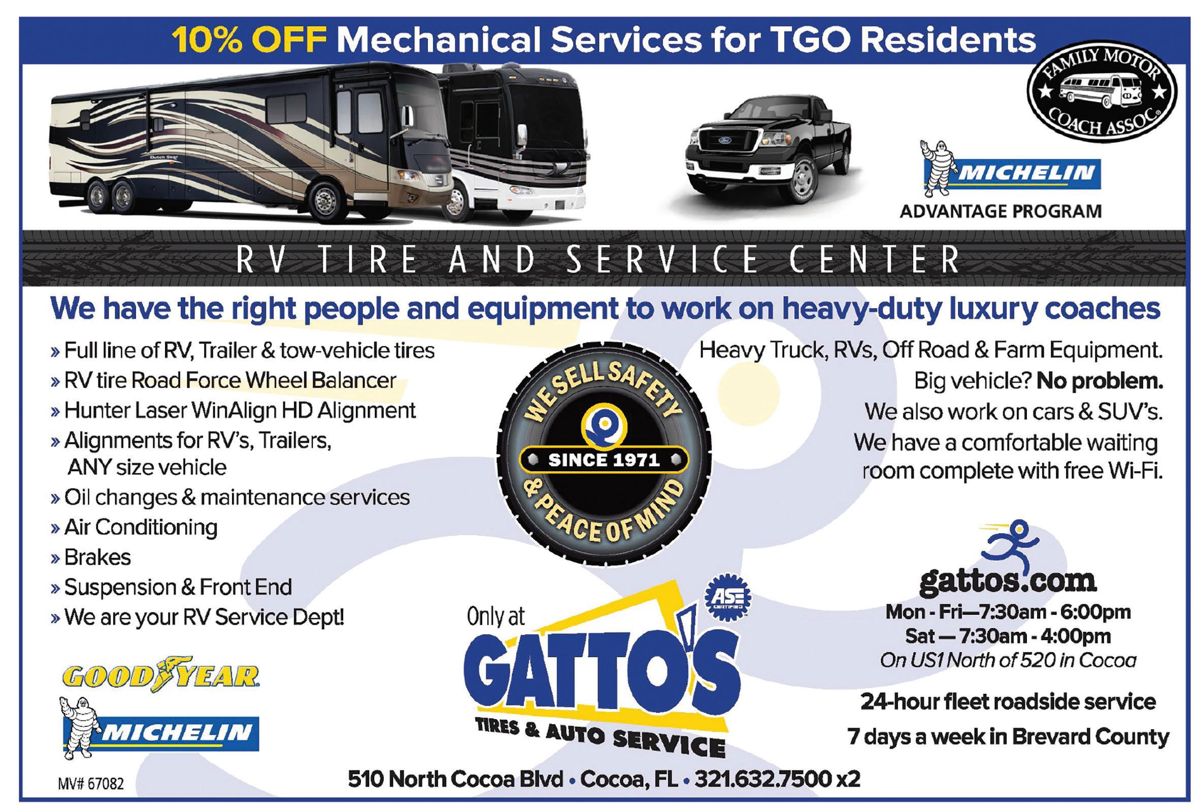 Drew’s Detailing Golf Cart Wash & Wax Drew Bjork 558 Lake Drive Owner Titusville, FL 32780 336-734-3619 facebook.com/DrewsDetailingTGO/ 64 TGO Market Place... Executive Suites Additions Remodels Design Work Building in Titusville since 1986 State Certified Building Contractor CBC039142 Licensed & Insured 321-383-7374 105 Cheney Highway Titusville, FL 32780 obrienthomas321@gmail.com Budget Blinds of Port Orange and Titusville • Port Orange, FL 32127 www.budgetblinds.com 407-671-1261 30 Years of Style & Expert Service Your One Stop Source for Blinds, Shades, Shutters & Drapes Locally Owned and Supporting Our Community! 321-529-0050 Commercial • Residential • Industrial License #17-PT-CT-00009 www.paintbrevard.com Julian J. Cecio, CPA 786-201- 5061 Business Advisory, Consulting, Accounting Bill Pay Services and Tax Returns jjcecio@gmail.com www.jjc-cpa.com TGO Resident Bathroom Remodeling • Repairs • New Construction 24 Hour Emergency Plumbing Service 321-268-1043 License No CFC048303 email: orangeplumbing@cfl.rr.com Visit Our Do-It-Yourself Center Jack of all Trees, LLC Proper Pruning • Hurricane Prep Wind Mitigation • Hurricane Clean Up Hazardous Removal Climber Owned & Operated Call/Text 321-272-7322 JackofallTrees321@gmail.com Licensed and Insured