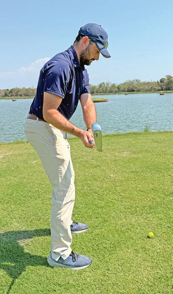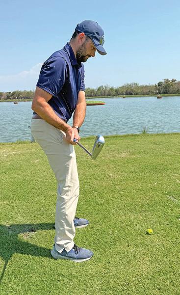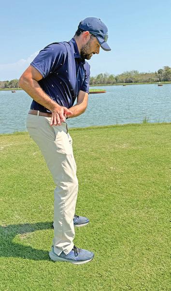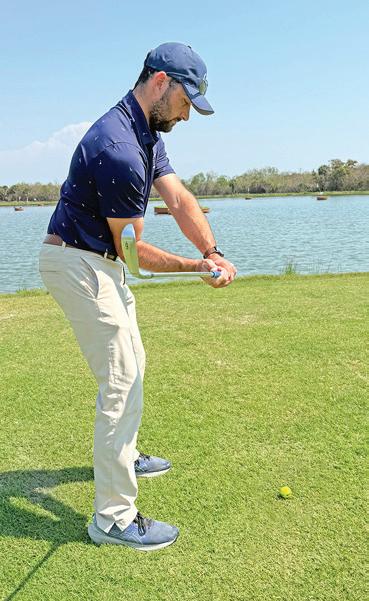 more neutral trail-hand grip. Your trail elbow should match up to your shirt seam in the backswing.