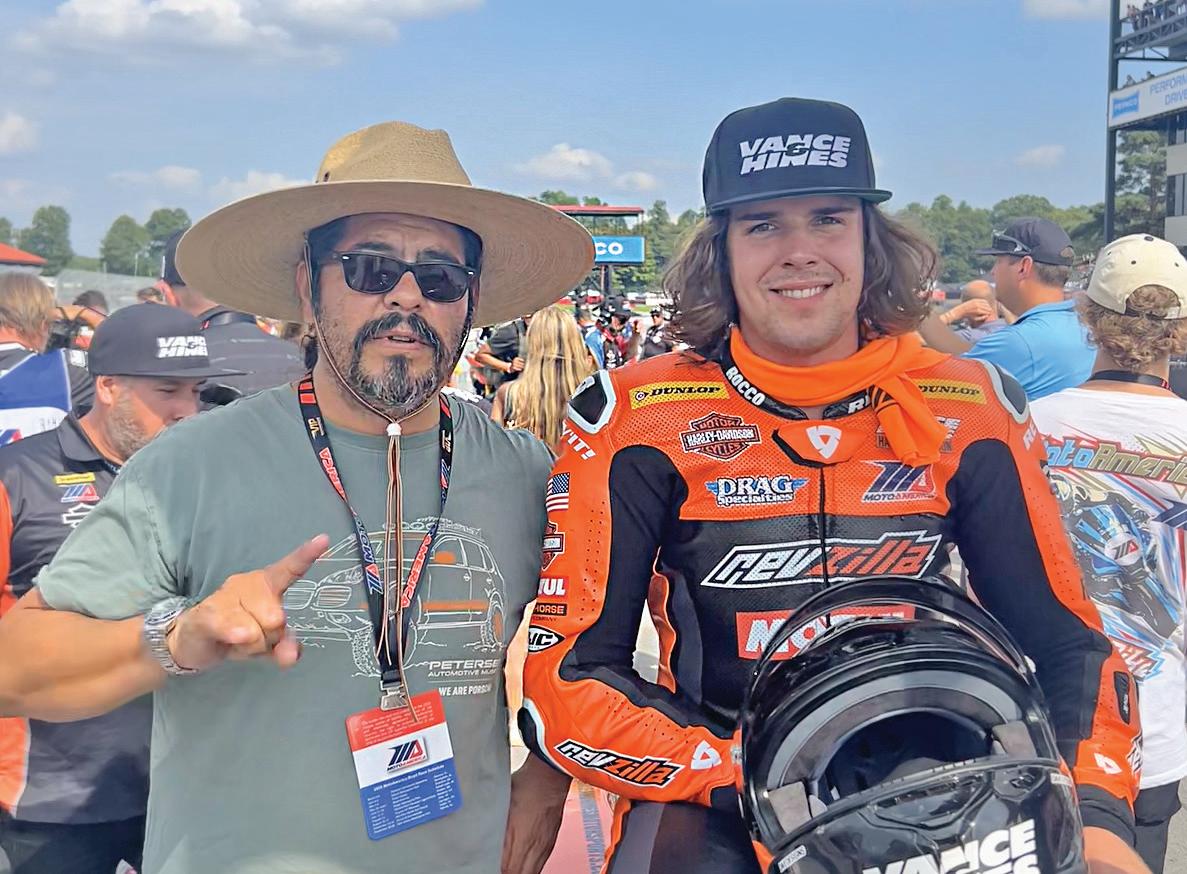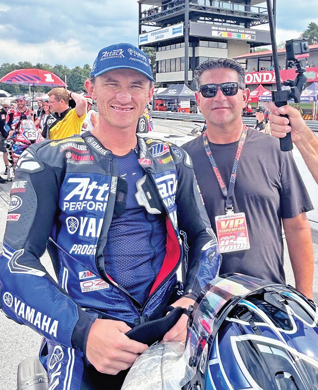 Last year, aboard his Team Hammer/Pegram Racing Suzuki GSX-R750, he finished on the podium in MotoAmerica Supersport at his home track, Mid-Ohio. He’s also road raced in Stock 1000 at Road America, the Mission Super Hooligan National Championship at Laguna Seca and COTA, and he’s continued to race in American Flat Track when he has “spare” time.