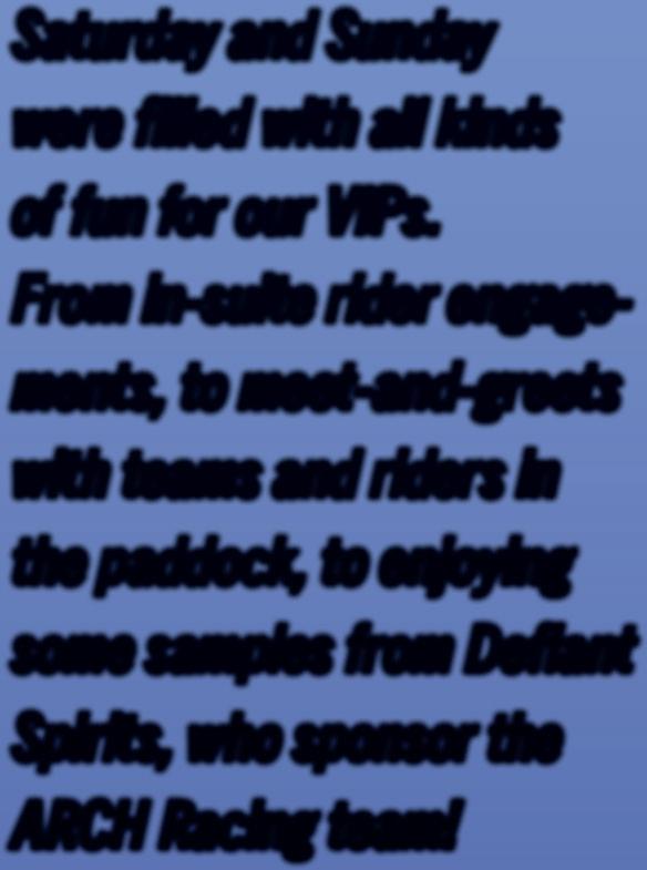 From in-suite rider engagements, to meet-and-greets with teams and riders in the paddock, to enjoying some samples from Defiant Spirits, who sponsor the ARCH Racing team!