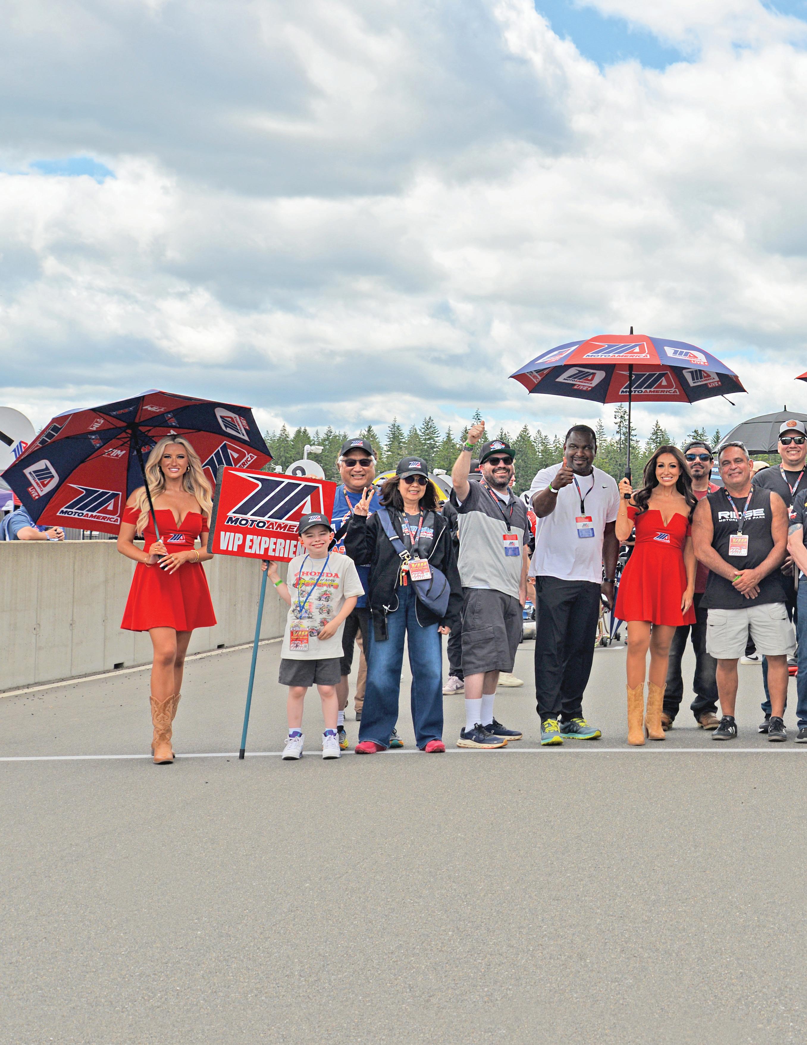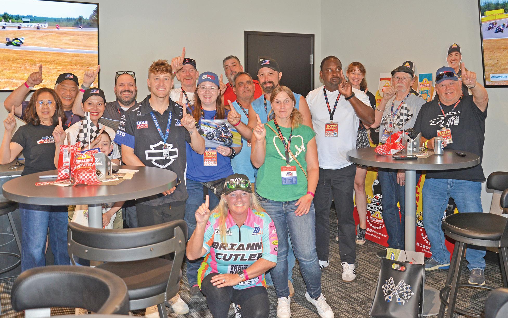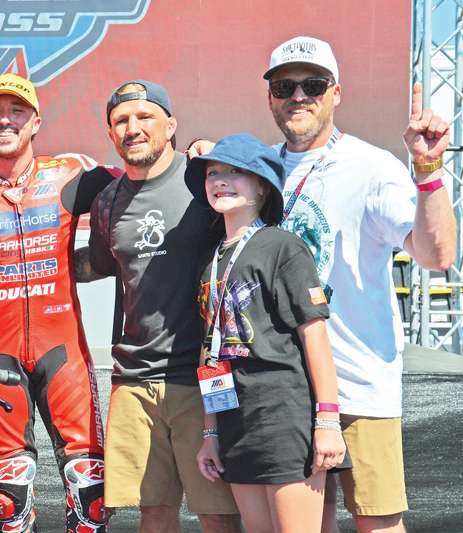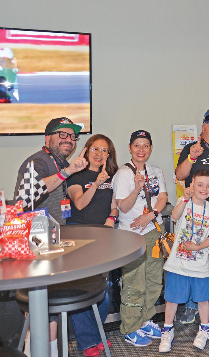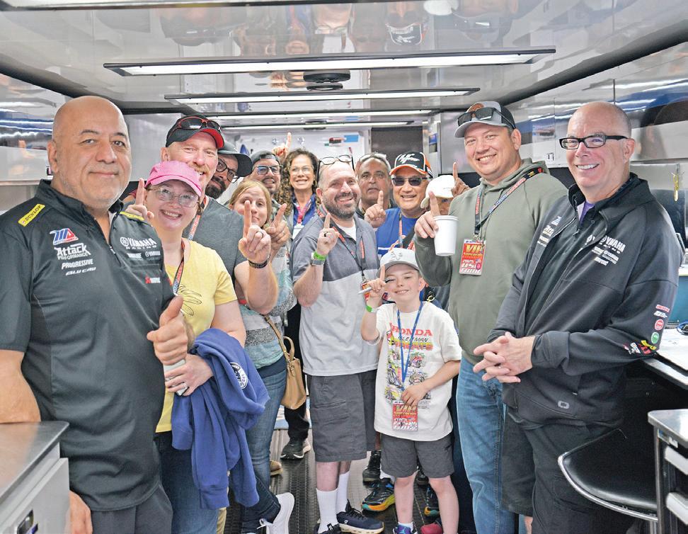 We were fortunate to have three Super Hooligan stars stop by the suite—Jake Lewis, Cory West, and Cody Wyman—along with other phenomenal racers, including Josh Hayes, Cameron Beaubier, Josh Herrin, and Avery and Ella Dreher. Early-morning paddock tours provided our VIP Superfans with a behind-the-scenes look at the Dunlop crew at work, at the MotoAmerica TV compound, and also, the meet-andgreets with the Honda, Yamaha, and Ducati teams.