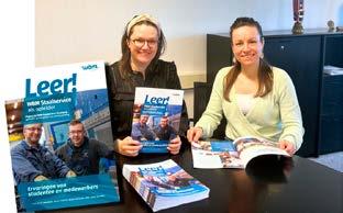 Evelien Harbers (links) van Marketing & Communicatie en HRD-specialist Marianne Mosselman met de eerste uitgave van Leer! WBM Staalservice heeft een nieuw magazine uitgebracht: Leer! Het blad geeft een beeld van wat WBM doet als opleider voor vmbo’ers, mbo’ers, hbo’ers, zij-instromers, techneuten die willen groeien én voor medewerkers van WBM.