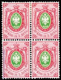 Russia. 1858, 10, 20 & 30 kopek. Blocks of 4. Largest multiples known.. Ex-Fabergé.