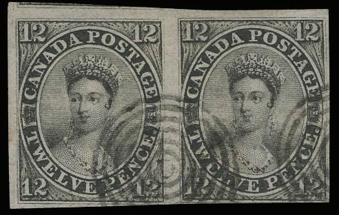 In any ordinary sale, the presence of even a single example of Canada’s legendary Queen Victoria 12-pence black of 1851, the top value in the nation’s first stamp issue, would be noteworthy, and its realization a likely cause for celebration. But the dispersal of the late Ron Brigham’s collection of Canada’s early issues, now in its third installment, makes for no ordinary sale. Though more than 50,000 of what Eastern, without exaggeration, dubbed “Canada’s most famous stamp” were printed at the time (in New York City, ahem), the issue proved unpopular and just a few hundred were actually sold, with the remainder being destroyed. Of the survivors, perhaps 120 to 130 examples have come down to us today, many of them in somewhat less than very-fine condition. The largest surviving multiple is a pair. At one time, there were six unused and three used pairs known; two of the mint pairs are in museums and another was broken up decades ago, along with one of the used pairs. It should not really surprise anyone that Brigham, who is widely acknowledged as having assembled the greatest collection of Canadian stamps of all time, owned not one, but