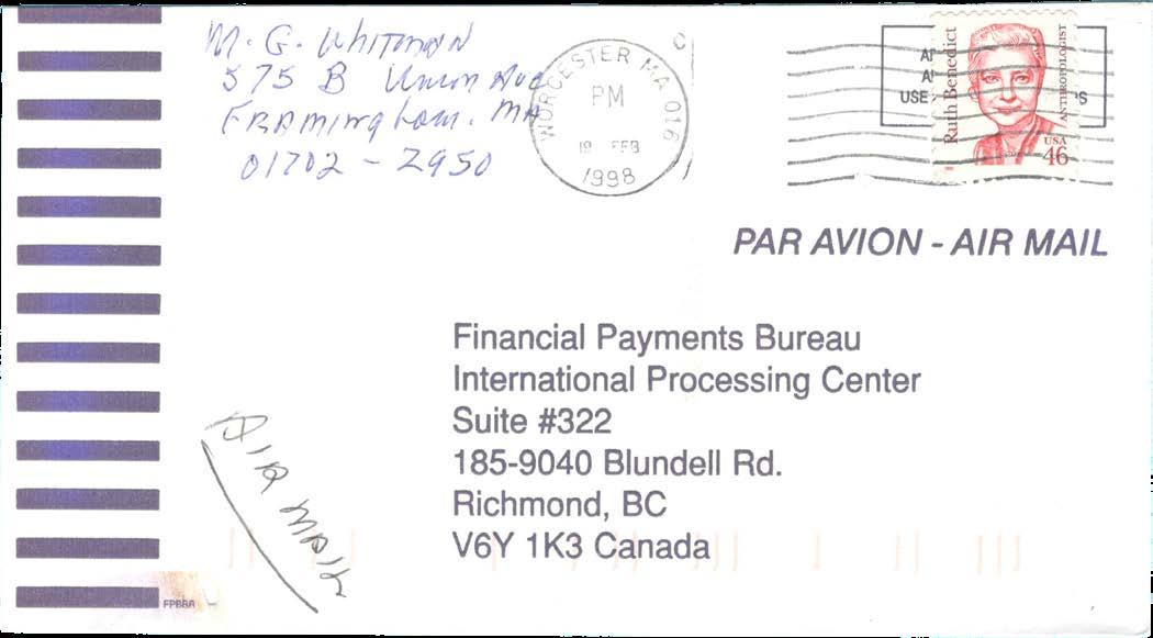 P.O. Box 3211 Fayville, MA 01745-3211 email: coverlover@gmail.com