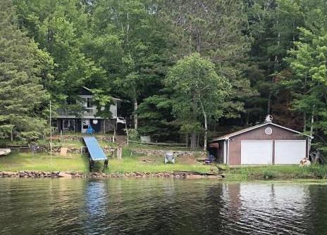 3 beds/2 bath ranch home on 2.61 Acres with cathedral ceilings, modern kitchen, lakeside deck, and 372’ of frontage on Lake Gogebic. Custom crank up pier included!