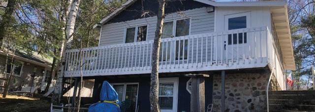 No expense was spared in this entirely renovated dream cottage/home on the sandy shores of Blue Lake. Flawless design and attention to detail make this an easy decision to own on this Premier, private-access 456-acre lake, with 190’ of sand frontage. The lake view is like no other, from the wall of living room windows, screen porch, and TimberTech deck. Remodeled from the studs up by Larry Meyer Construction in 2022, finishes include Kolbe & Kolbe windows, Diamond Kote LP siding, new roof, soffit and fascia. Highlights include custom white oak cabinets, built-ins, Cambria tops in kitchen with GE Café smart appliances, gas fireplace, solid doors, new furnace, central air, natural gas, Spectrum high-speed and more. The landscaping completes the package, with bluestone chipped walkways, a firepit, and limestone retaining walls. This turn-key home includes highend furnishings and décor, pontoon, lift and more. Minutes from Minocqua, shopping, dining, trails and much more! Please visit www.BlueLakePoint.com for additional information including an immersive 3D Tour. MLS# 205657 $1,349,000