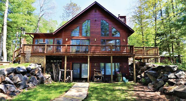 Beautiful home with perfect Northwoods aesthetics. This five-bedroom, five-bathroom home sits proudly on 5.13 acres. Outstanding vaulted ceilings in great room with open floor plan to dining area. The kitchen features a double oven, two islands with eat-in bar, and charming hickory cabinets. Spacious fi rst floor master suite includes a beautiful whirlpool tub, tile walk-in shower, two walk-in closets, a ledgestone gas fi replace, hot tub room and access to the wrap-around deck. The loft area consists of three bedrooms with walk-in closets. The lower-level family room is the ultimate space for entertaining family and guests, surround sound, wet bar, personal office and extra utility room. Additional prospective living quarters in adorable log sided gazebo house. Attached two car heated garage with unfinished upstairs and extra storage and a new two car detached garage. Professionally landscaped yard with solar lighting, excellent patio space, new outdoor kitchen on the multi-level deck. MLS# 206502 $699,900