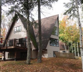 Lake Gogebic 4 BR, 3 BA A-frame style lake home on 257’ of Lake Gogebic’s West Shore. The home has 3 finished levels of living area with spectacular views from nearly every room. Other amenities include a 30 x 40’ two story heated/fully insulated detached garage w/guest quarters, a 40’ crank-up pier, storage shed and a playground for the children. This property also has an established rental history and furnishings could be included in the sale price.