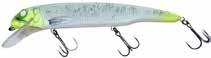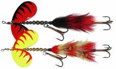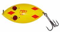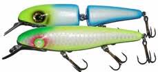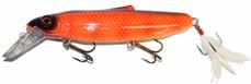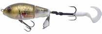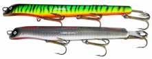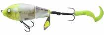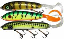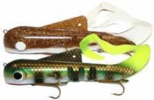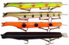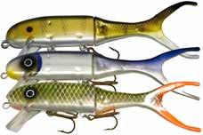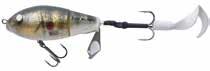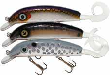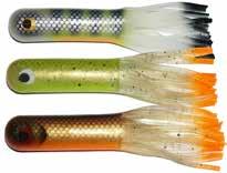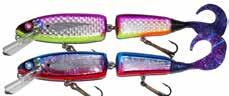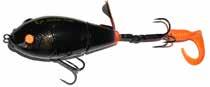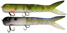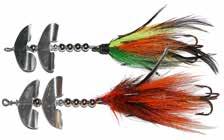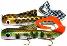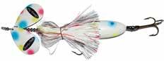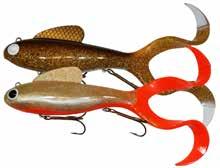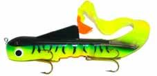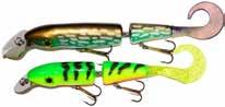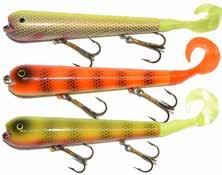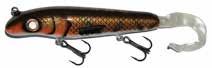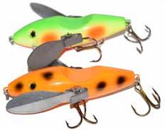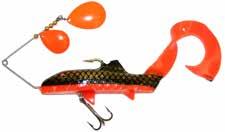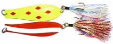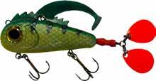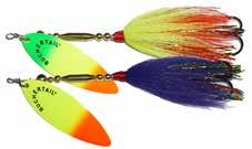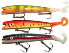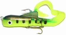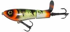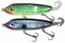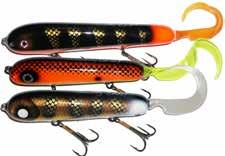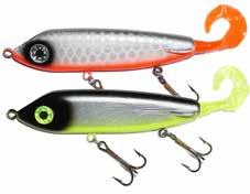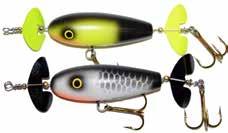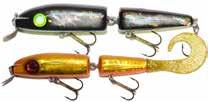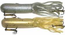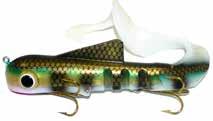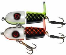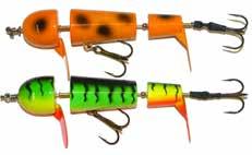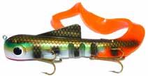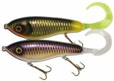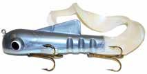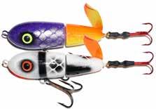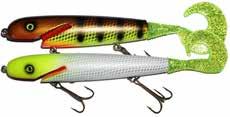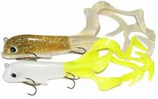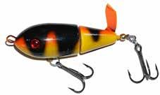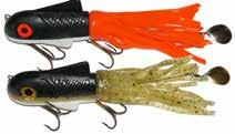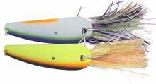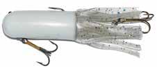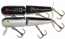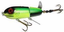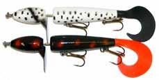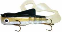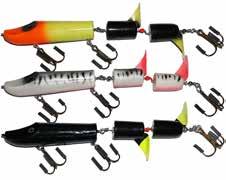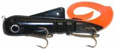 Built of the same tooth-proof plastic and precision balanced like the original, this model adds a second rotating tail for even more attraction. The tail hook is shrink tubed to resist fouling and catch those short strikers off guard. Perfect choice for choppy water and provides a BIG target for those night stalkers.