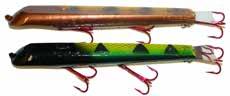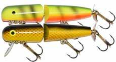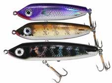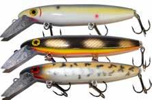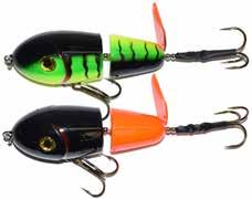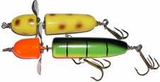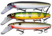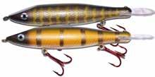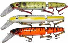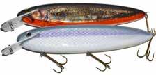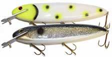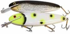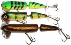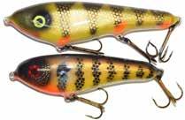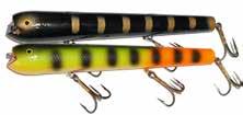 JITTERBUG: The musky sized model of the long time favorite Jitterbug is just the right meal for pike, muskies, and monster bass too. Use a slow retrieve to make the Jitterbug dance back and forth with a crazy wobble.