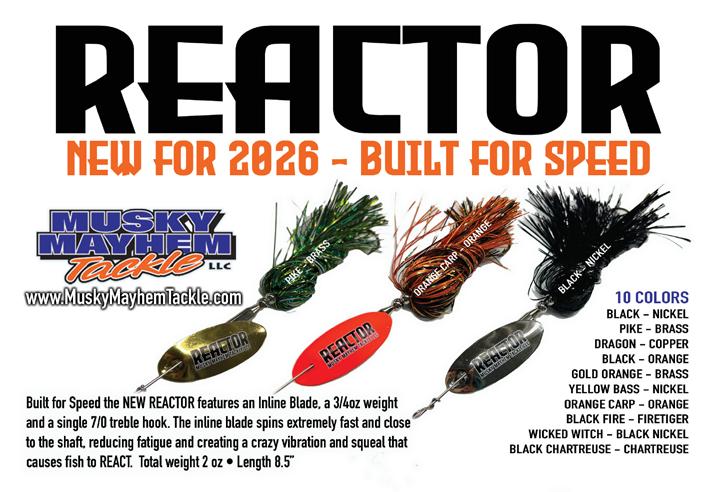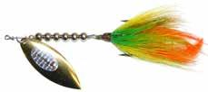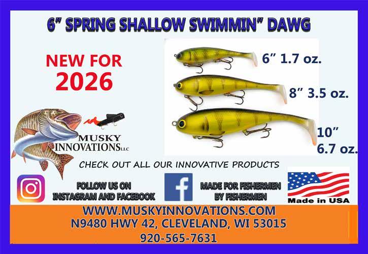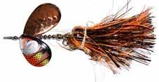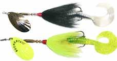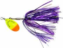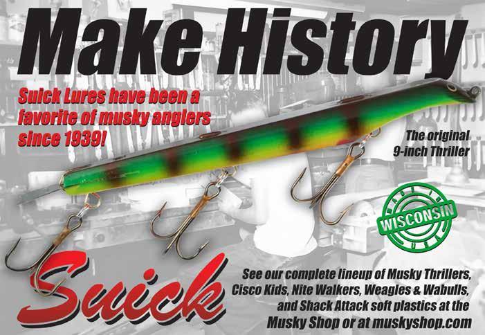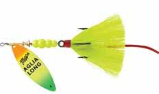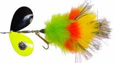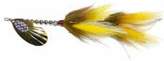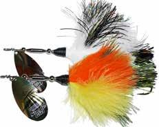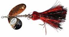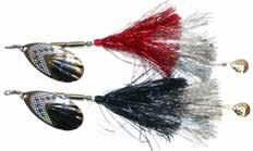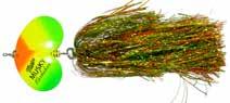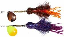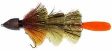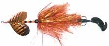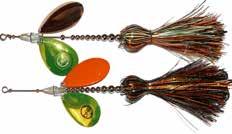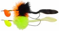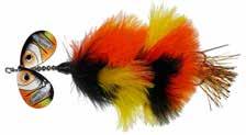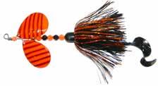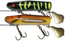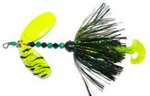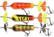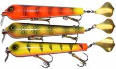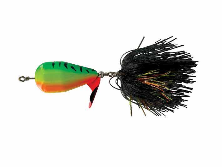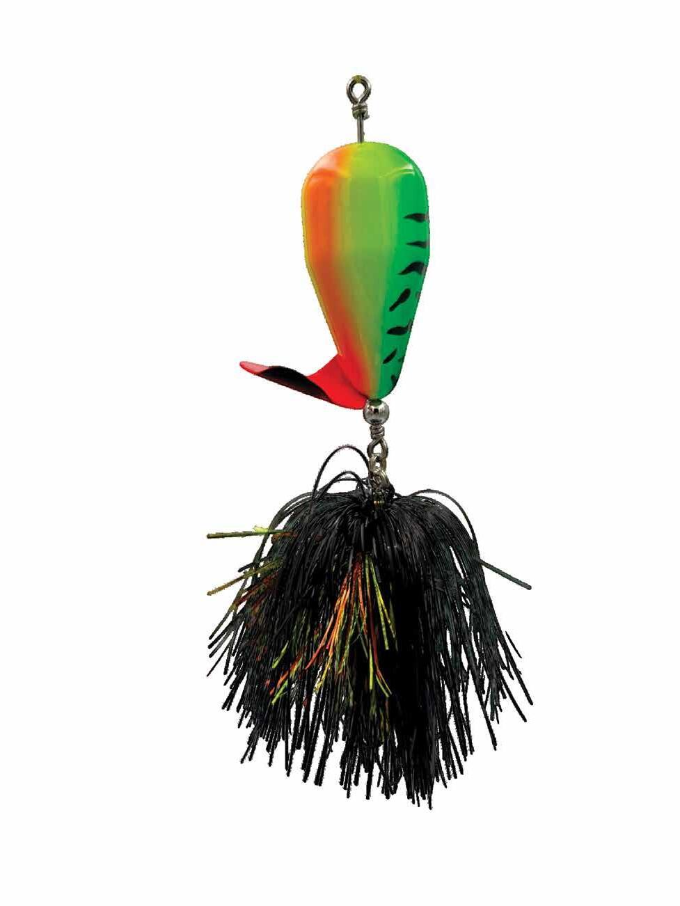 BUCHER TOPRAIDER: This tail rotating lure has become among the top producing lures in the musky world. It’s balanced to ride in an upright position at any speed and the integrated tail is pre-tuned to produce an attractive plop-plop sound that muskies love to devour. Shrink tubed tail hook resists fouling.