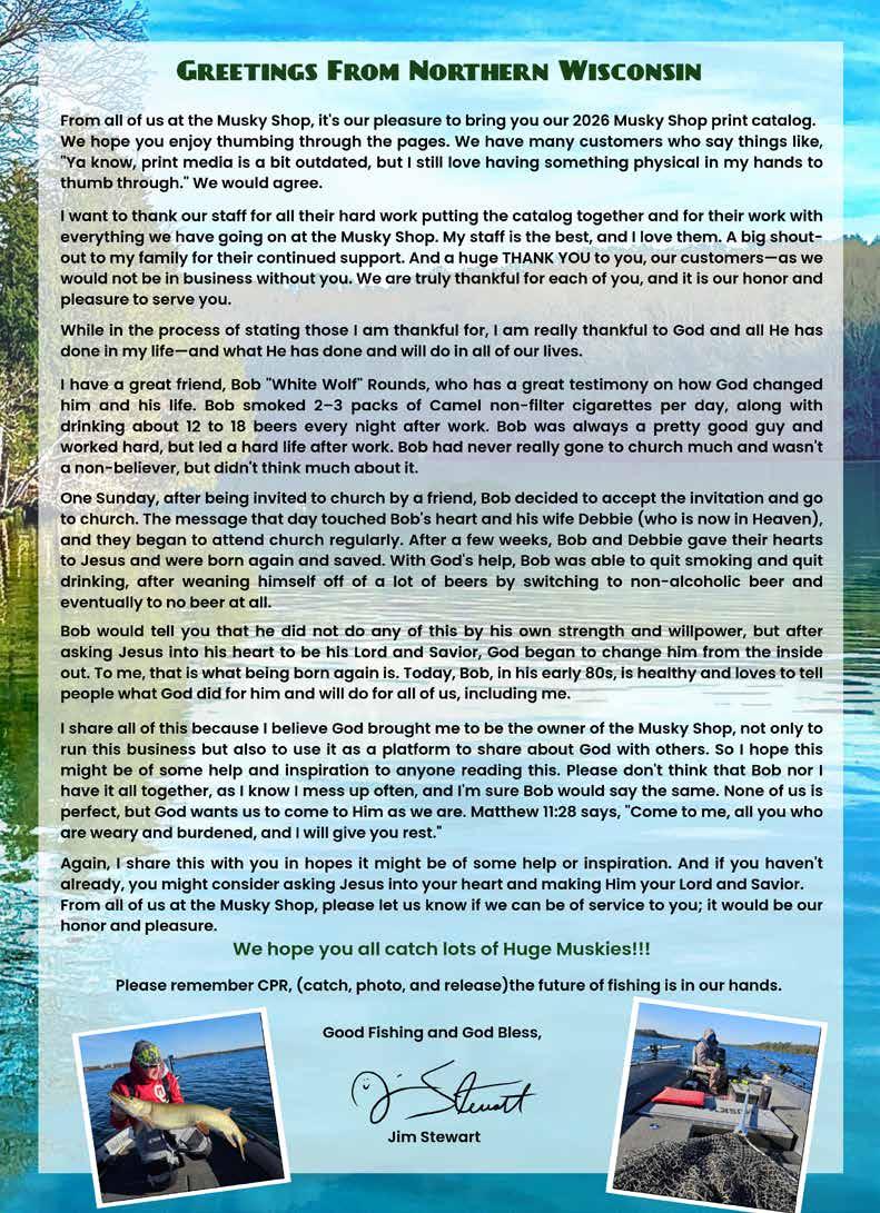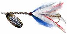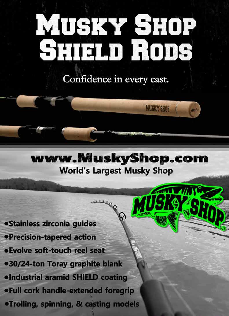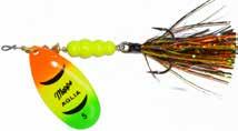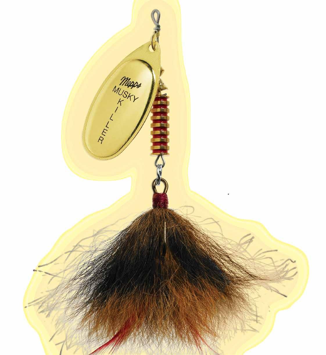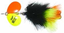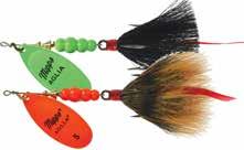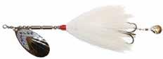 BUCHER TOPRAIDER: This tail rotating lure has become among the top producing lures in the musky world. It’s balanced to ride in an upright position at any speed and the integrated tail is pre-tuned to produce an attractive plop-plop sound that muskies love to devour. Shrink tubed tail hook resists fouling.