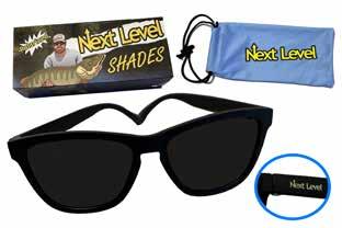 Next Level Shades are guide-tested and musky-approved! Made with anti-slip material, they are perfect for long days on the water. Hand-selected lenses are UV400 Polarized so you can see muskies before they see you. "Look RAD, even if the bite’s bad!" Each pair comes with a hard storage case with magnet closure and an interior storage bag/cleaning cloth.