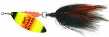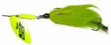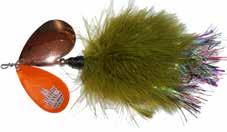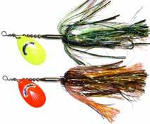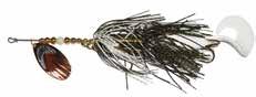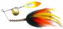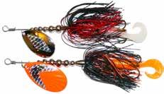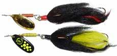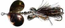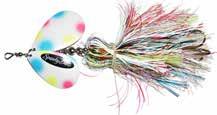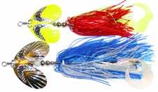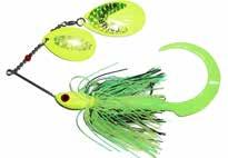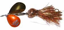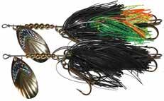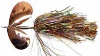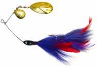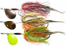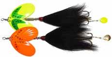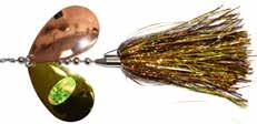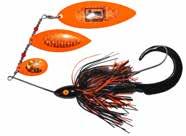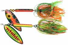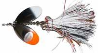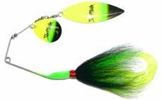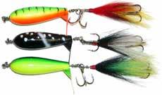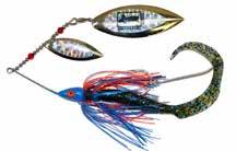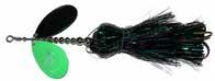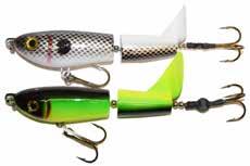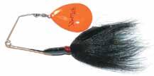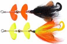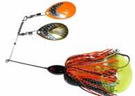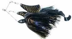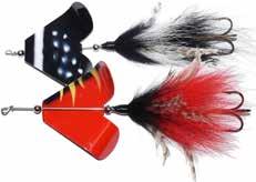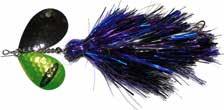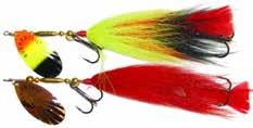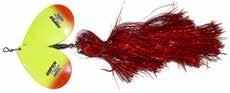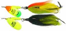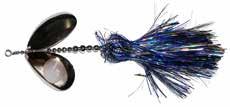 This hybrid surface/bucktail lure uses a rotating head to chop up the water and bucktail trailer to further entice big fish. Excellent hook-ups and easy to use day in....day out.