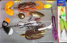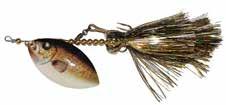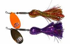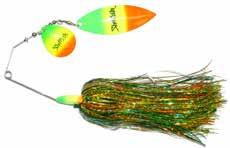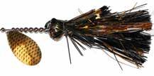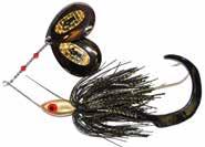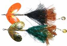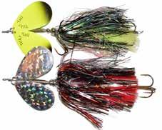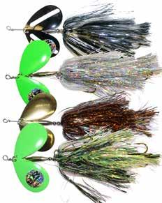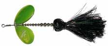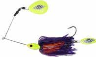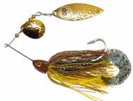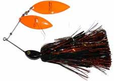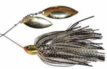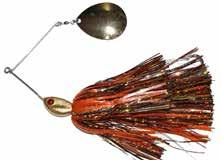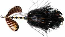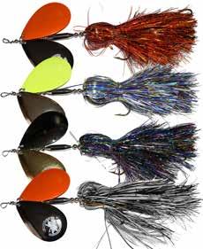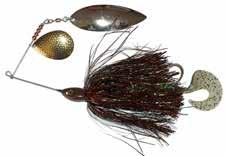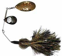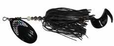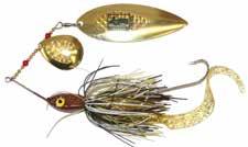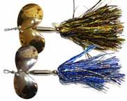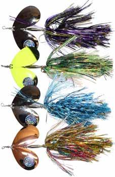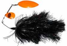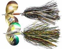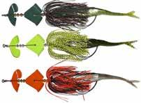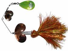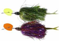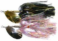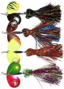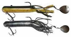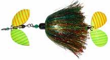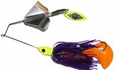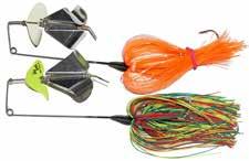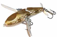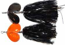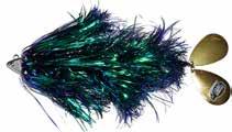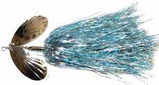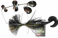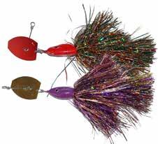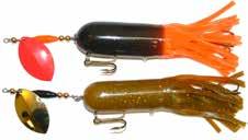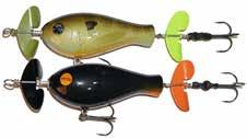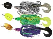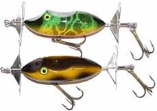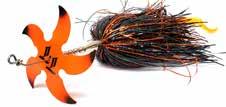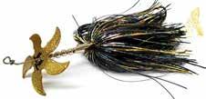 CAT’S TAILS TOPWATERS: This surface lure from Cat Tails is an extremely weedless buzzer that rises quickly and kicks up a fuss with its twin counter rotating blades. A large single hook with a plastic trailer allows you to work this bait through the thickest cover.