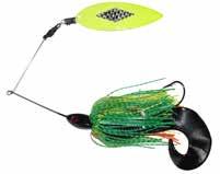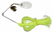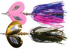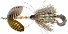 Topwater buzz bait with great lift and sound. .062 wire. 7/0 hooks. Delta and Quad counter rotating blades. Easy start up, with a unique sound. The Delta blade can be bent to your sound preference. Drives fish crazy!