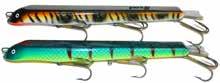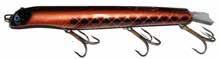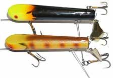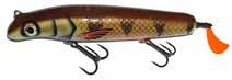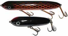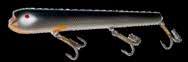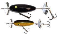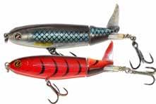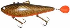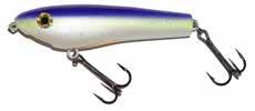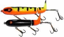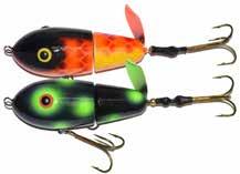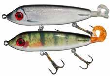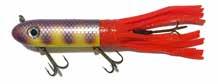The Topper features stainless blades on the nose and tail and a torpedo profile to create a lifelike wake on the water. Works well at any speed and the durable plastic body stays buoyant and toothproof!