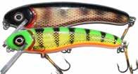 MUSKY SAFARI TACKLE FRANKENSPITZ JR: This hybrid lure looks like something the crazed doctor stitched together in the laboratory! Part creeper, part wobbler, part globe, this lure combines several of the most deadly presentations in one bait. Excellent components and workmanship. Can work very fast. It’s Alive!!!
