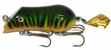 The Bitten "Buzzer" is a fine little surface lure. "Squeak" it in slowly or use long pulls for maximum water spray. Also, burn it in like a buzz bait. Hard plastic, solid through wire construction....outstanding!