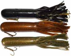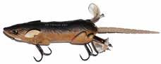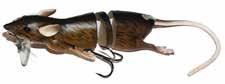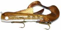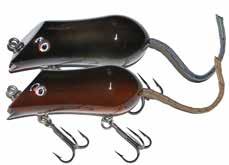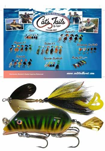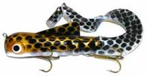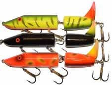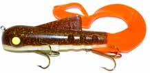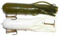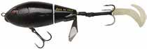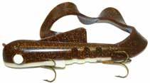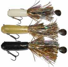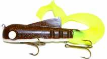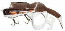 CAT’S TAILS MUSKY RAT: One of the easiest to work surface baits you will ever use. Slow to moderate retrieves work best, providing a tantalizing wiggle and roll. Two hooks and a super tough tail.