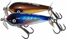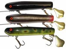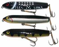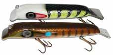 SMITY SLAP-TAIL: Smity is a master at creating effective surface baits. Here’s one of the best. The lure rocks back and forth while the brass tail blade slaps the water with a plop sound. Excellent night bait and when you’ve got a big fish spotted. Made in the USA.