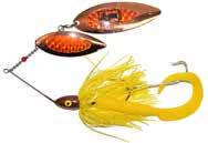 COMET: Haley’s Comet features a soft plastic tail along with a rotating blade head to chop up your favorite water. Two short shank wide gap hooks, high impact poly and through wire construction. Super action! Don’t forget to figure 8.