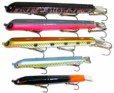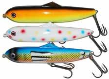 POE’S GIANT JACKPOT: One of the most popular walk the dog style baits. These are made of cedar to get up and running fast! Very easy to use with short rod snaps to get the Jackpot dancing.