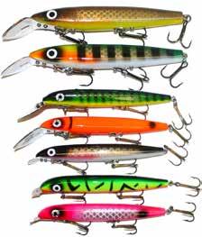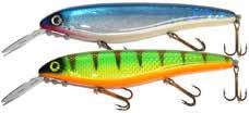 Colors: 21 black-hot belly, 82 chart black craw, 91 silver glitter blue back, 92 silver glitter black back, 111 firetiger, 122 perch, 123 sucker,143 perch tiger, 172 loon