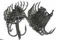 Colors: 21 silver, 22 gold fish scale, 23 dark blue fish scale, 24 green fish scale, 25 red fish scale, 28 lt. blue fish scale, 29 bronze fish scale, 34 black nickel fish scale, 35 yellow gold scale, 37 chart fish scale, 38 hot pink scale, 81 silver mini fish scale, 82 gold mini fish scale, 101 silver squiggle,102 gold squiggle, 189 bronze mini scale, 195 yellow gold mini scale, 810 glow
