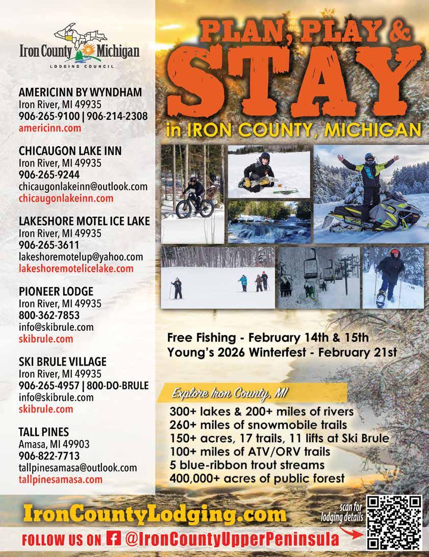 This time of year is one of our favorites Up North. Snow still blankets the trails, making it perfect for snowmobiling, skiing, tubing, and ice fishing, while longer days hint that spring adventures are just around the corner. Whether you’re bundling up for one last winter hurrah or starting to plan your warm-weather escapes, this issue is packed with inspiration to get you outside and moving.